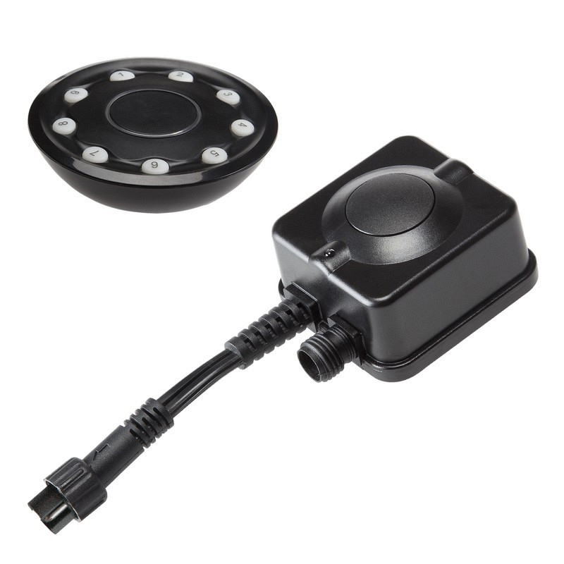 Met de afstandsbediening zet je op afstand de buitenverlichting aan of uit. Op één afstandsbediening kun je tot wel 9 lampen aansluiten. De afstandsbediening werkt op radiofrequentie en extra ontvangers zijn los verkrijgbaar.Specificaties